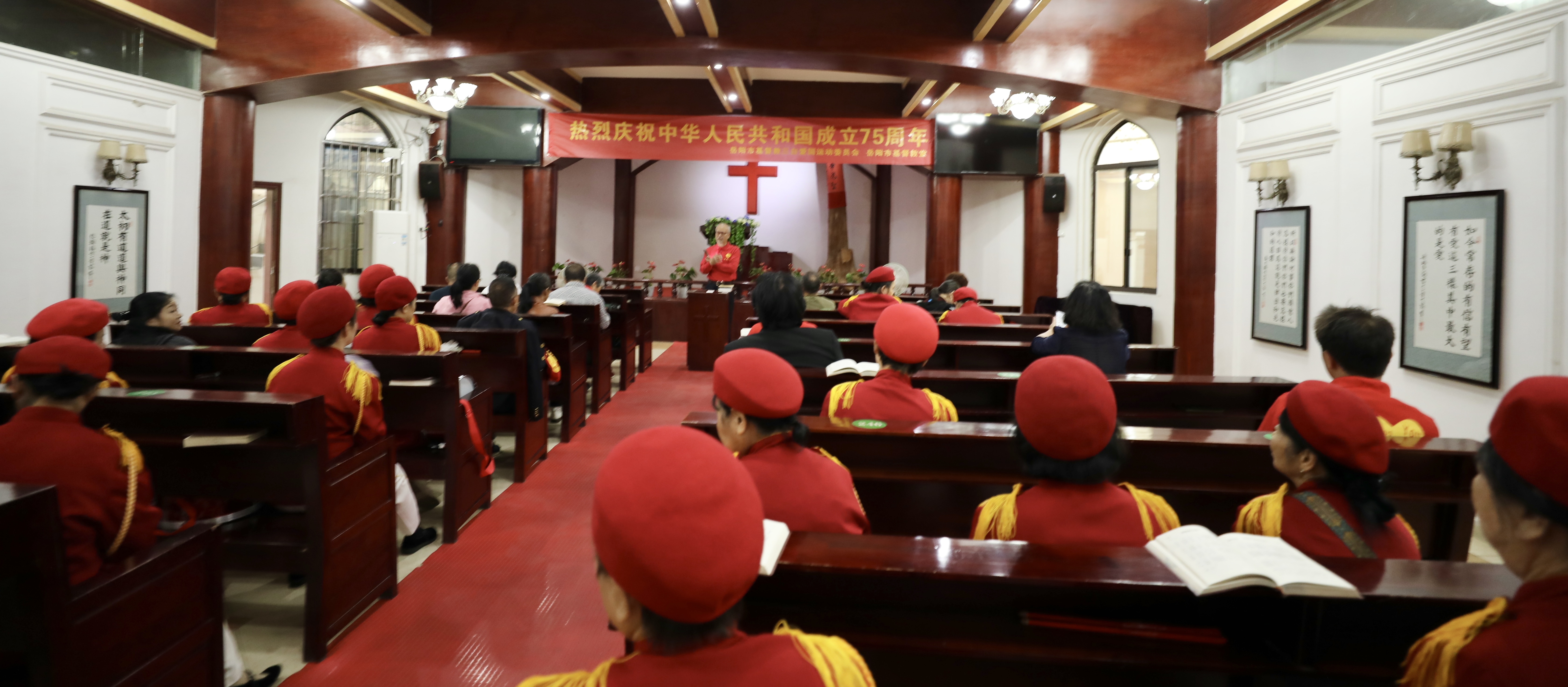 10月1日,为庆祝中华人民共和国成立75周年,上午8:00在基督教岳阳堂小礼拜堂中,岳阳市、岳阳楼区基督教三自爱国运动委员会、岳阳市基督教堂举行了隆重的庆祝活动。